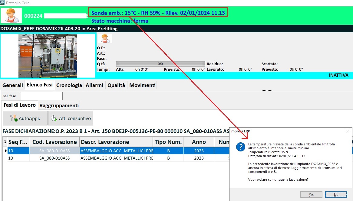 • Dati ambientali (temperatura e umidità): questi parametri vengono monitorati tramite sensori e inviati all’ERP per garantire il rispetto di precisi standard e rientrare nei parametri di qualità dell’incollaggio.